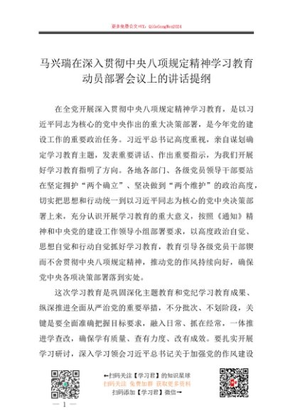/ 2025主题教育│03动员部署:马兴瑞在深入贯彻中央八项规定精神学习教育动员部署会议上的讲话提纲