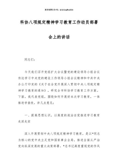 / 2025主题教育│03动员部署:科协八项规定精神学习教育工作动员部署会上的讲话