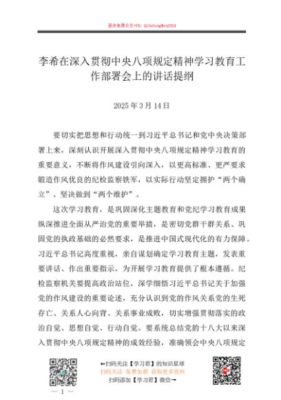 / 2025主题教育│03动员部署:李希在深入贯彻中央八项规定精神学习教育工作部署会上的讲话提纲
