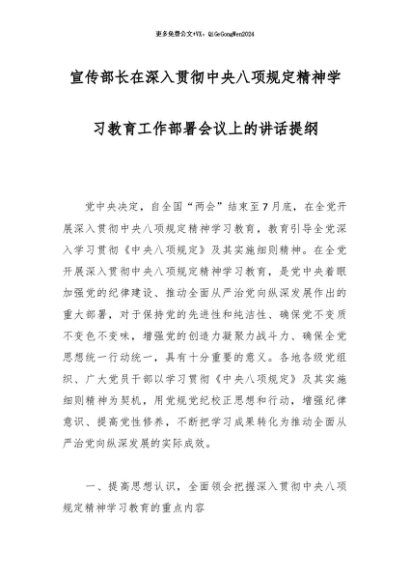 / 2025主题教育│03动员部署:宣传部长在深入贯彻中央八项规定精神学习教育工作部署会议上的讲话提纲