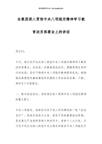 2025主题教育│03动员部署:在集团深入贯彻中央八项规定精神学习教育动员部署会上的讲话