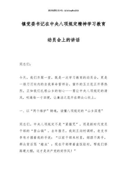 / 2025主题教育│03动员部署:镇党委书记在中央八项规定精神学习教育动员会上的讲话