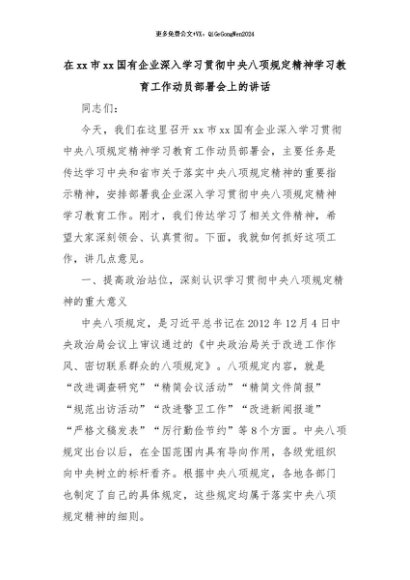 / 2025主题教育│03动员部署:在xx市xx国有企业深入学习贯彻中央八项规定精神学习教育工作动员部署会上的讲话