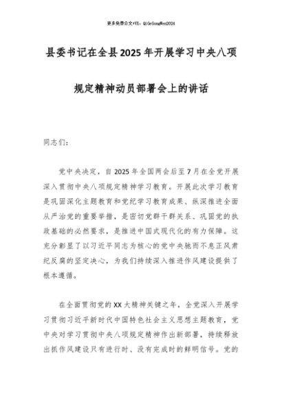 / 2025主题教育│03动员部署:县委书记在全县2025年开展学习中央八项规定精神动员部署会上的讲话