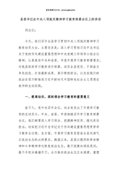 / 2025主题教育│03动员部署:县委书记在中央八项规定精神学习教育部署会议上的讲话