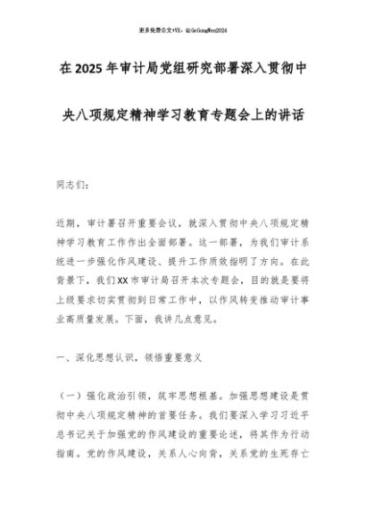 / 2025主题教育│03动员部署:在2025年审计局党组研究部署深入贯彻中央八项规定精神学习教育专题会上的讲话