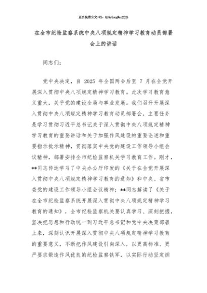 / 2025主题教育│03动员部署:在全市纪检监察系统中央八项规定精神学习教育动员部署会上的讲话