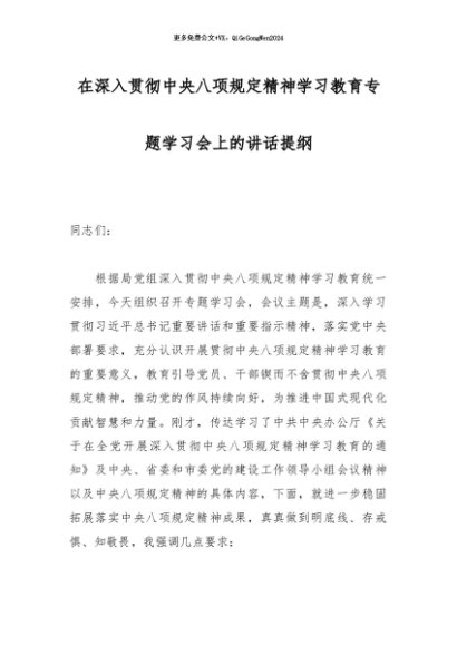 / 2025主题教育│03动员部署:在深入贯彻中央八项规定精神学习教育专题学习会上的讲话提纲