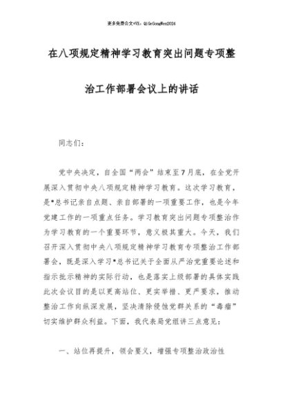 2025主题教育│03动员部署:在八项规定精神学习教育突出问题专项整治工作部署会议上的讲话