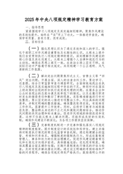 / 2025主题教育│02方案计划:村镇开展2025年中央八项规定精神学习教育工作实施方案(4篇)