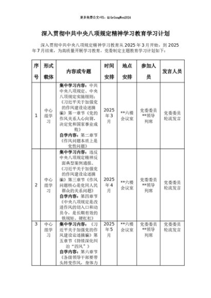 / 2025主题教育│02方案计划:深入贯彻中共中央八项规定精神学习教育学习计划