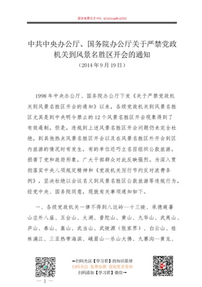 / 2025主题教育│01上级精神:相关规定16《关于严禁党政机关到风景名胜区开会的通知》——2014年09月