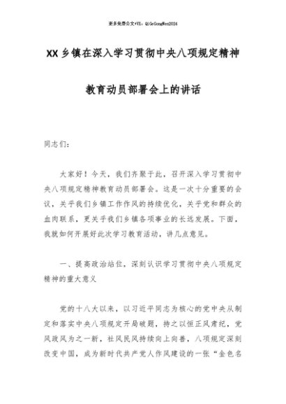 / 2025主题教育│03动员部署:XX乡镇在深入学习贯彻中央八项规定精神教育动员部署会上的讲话