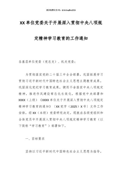 / 2025主题教育│02方案计划:单位党委关于开展深入贯彻中央八项规定精神学习教育的工作通知