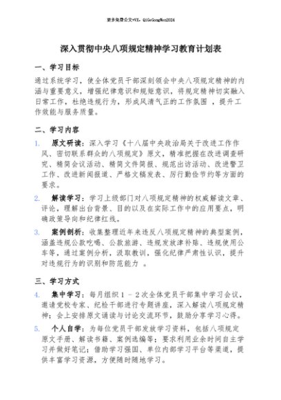 / 2025主题教育│02方案计划:深入贯彻中央八项规定精神学习教育工作计划表1