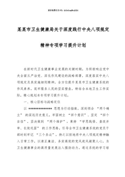 2025主题教育│02方案计划:某某市卫生健康局关于深度践行中央八项规定精神专项学习提升计划