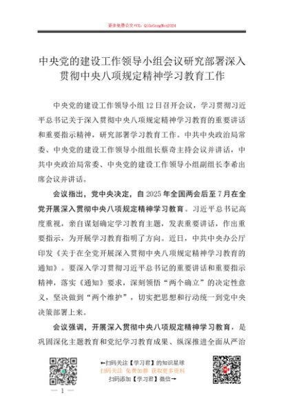 / 2025主题教育│01上级精神:中央党的建设工作领导小组会议研究部署深入贯彻中央八项规定精神学习教育工作