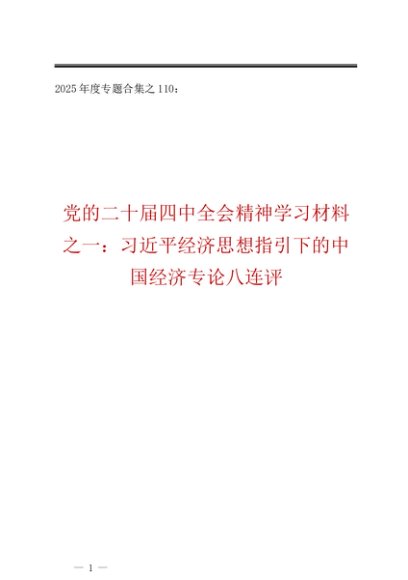 / 2025年度专题合集110:党的二十届四中全会精神学习材料之一:习近平经济思想指引下的中国经济专论八连评(8篇)
