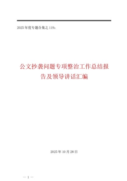 / 2025年度专题合集119:公文抄袭问题专项整治工作总结报告及领导讲话汇编(14篇)