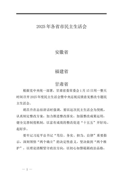 / 2026年度专题合集015:2025年各省市书记在党委常委会民主生活会上的讲话提纲(篇)