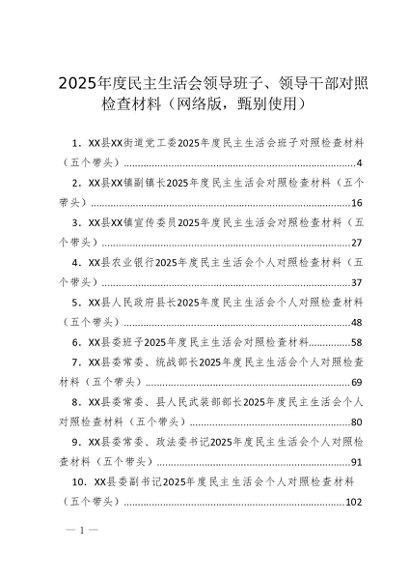 / 2026年度专题合集017:2025年民主生活会领导班子、领导干部对照检查材料(29篇)