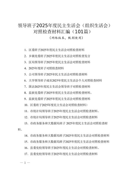/ 2026年度专题合集019:2025年领导班子民主生活会(组织生活会)对照检查材料汇编(101篇)