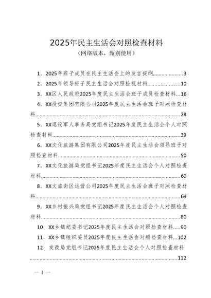 / 2026年度专题合集018:2025年民主生活会对照检查材料(17篇)