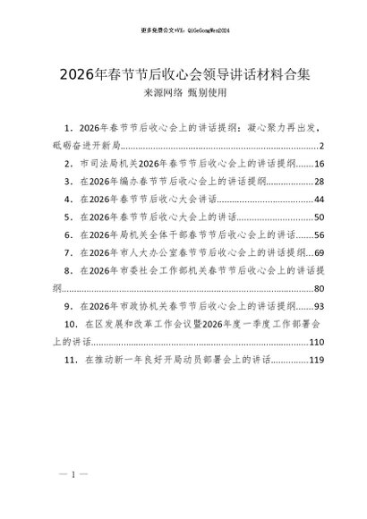 / 2026年度专题合集034:2026年春节节后收心会领导讲话材料合集(11篇)