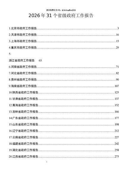 / 2026年度专题合集042:2026年31个省级政府工作报告合集(31篇)