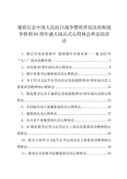 2025年度专题合集093:观看纪念中国人民抗日战争暨世界反法西斯战争胜利80周年盛大阅兵式心得体会和总结材料汇编(17篇)