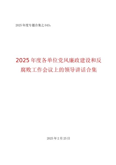 / 2025年度专题合集043:2025年度各单位党风廉政建设和反腐败工作会议上的领导讲话汇编(10篇)