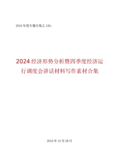 / 2024年度专题合集120:2024经济形势分析暨四季度经济运行调度会讲话材料写作素材合集(13篇)