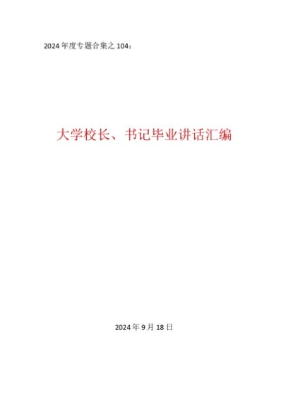 / 2024年度专题合集104:大学校长、书记毕业讲话汇编(45篇10 万字)