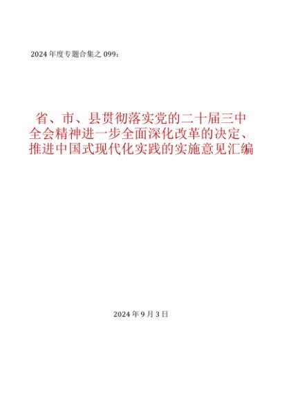 2024年度专题合集099:省市县贯彻落实党的二十届三中全会精神进一步全面深化改革的决定、推进中国式现代化实践的实施意见汇编(7篇 )