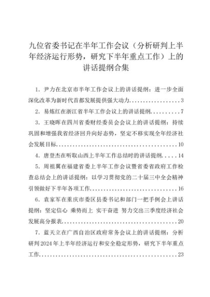 2024年度专题合集074:2024年半年工作会议讲话材料合集(9位省委书记分析研判上半年经济运行形势,研究下半年重点工作)(9篇)