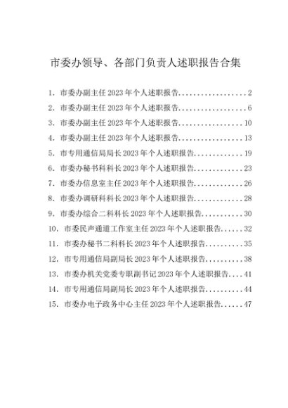 / 2024年度专题合集030:市委办领导、各部门负责人述职报告合集15篇