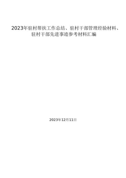 / 专题合集:2023年驻村帮扶工作总结、驻村干部管理经验材料、驻村干部先进事迹参考材料汇编(83篇16万字)