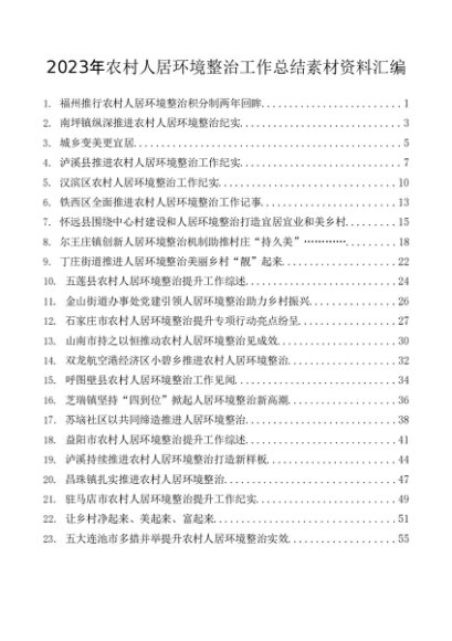 / 专题合集:2023年农村人居环境整治工作总结素材资料汇编(33篇)