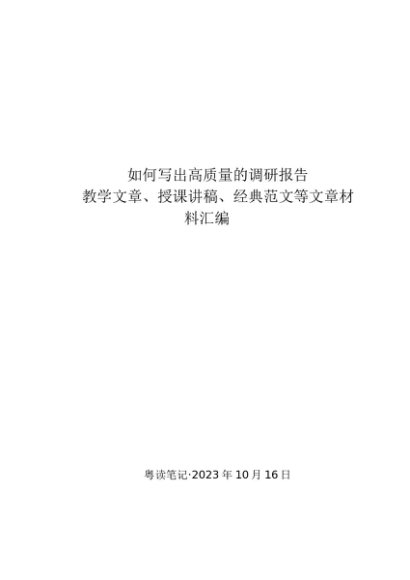/ 专题合集:20231016如何写出高质量的调研报告∣大兴调查研究——教学文章、授课讲稿、经典范文汇编(37篇)
