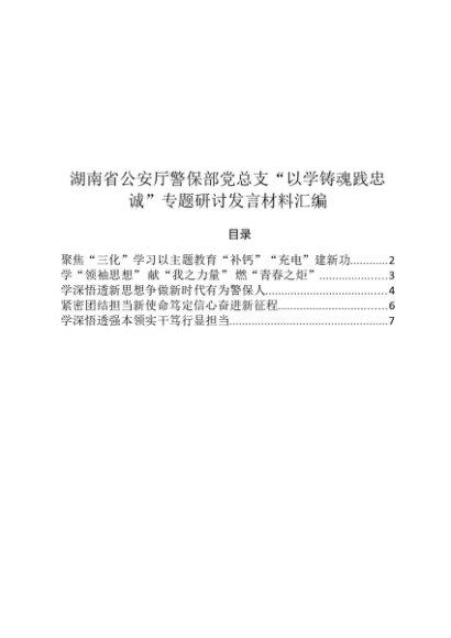 / 专题合集:20230915主题教育读书班——以学铸魂践忠诚交流发言材料(湖南省公安厅警保部党总支5篇)