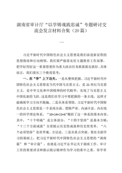 / 专题合集:20230915主题教育读书班——以学铸魂践忠诚交流发言材料(湖南省审计厅20篇)