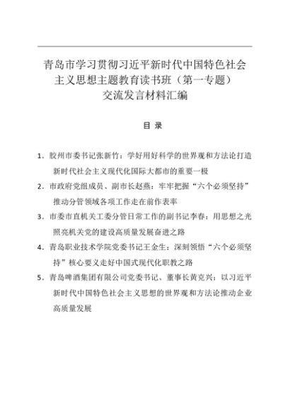 / 专题合集:20230915主题教育读书班——世界观方法论(六个必须坚持)交流发言材料(青岛市5篇)