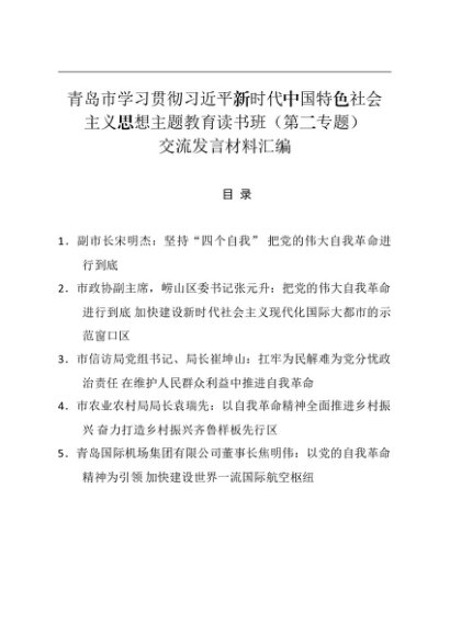 / 专题合集:20230915主题教育读书班——党的自我革命交流发言材料汇编(青岛市5篇)