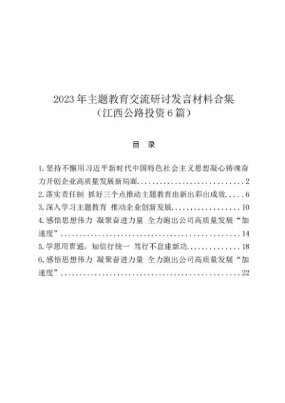 / 专题合集:20230915主题教育交流研讨发言材料合集(江西公路投资6篇)