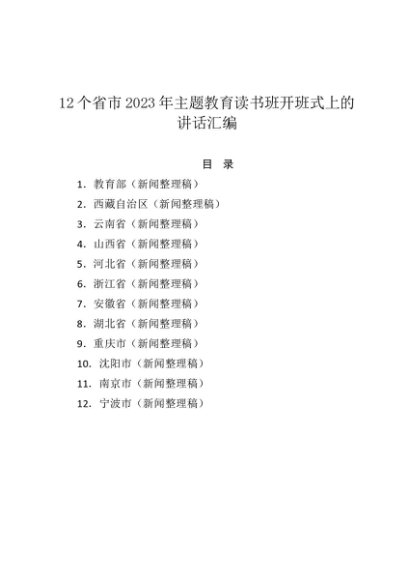 / 专题合集:20230510省市2023年主题教育读书班开班式讲话材料(12篇)