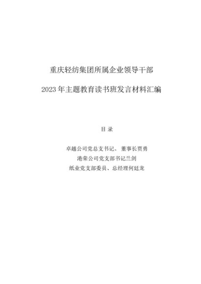 / 专题合集:20230610主题教育读书班发言材料(重庆轻纺集团所属企业3篇)