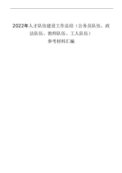 / 专题合集:2022年人才队伍建设工作总结(公务员队伍、政法队伍、教师队伍、工人队伍)参考材料汇编(34篇)