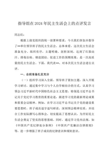 组织生活:2024年度“四个带头”民主生活会:6-04总指导组点评发言