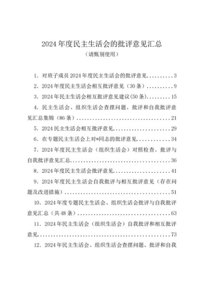 / 组织生活:2024年度“四个带头”民主生活会:6-08批评与自我批评意见汇总(600余条6万字)