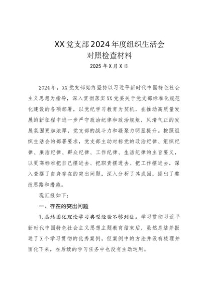 / 组织生活:2024年度“四个带头”组织生活会:02党支部对照检查材料